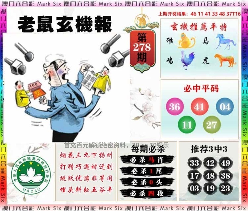 270期九肖:猴羊虎马鼠龙蛇牛鸡 |